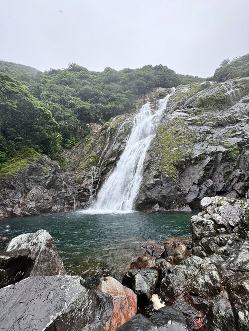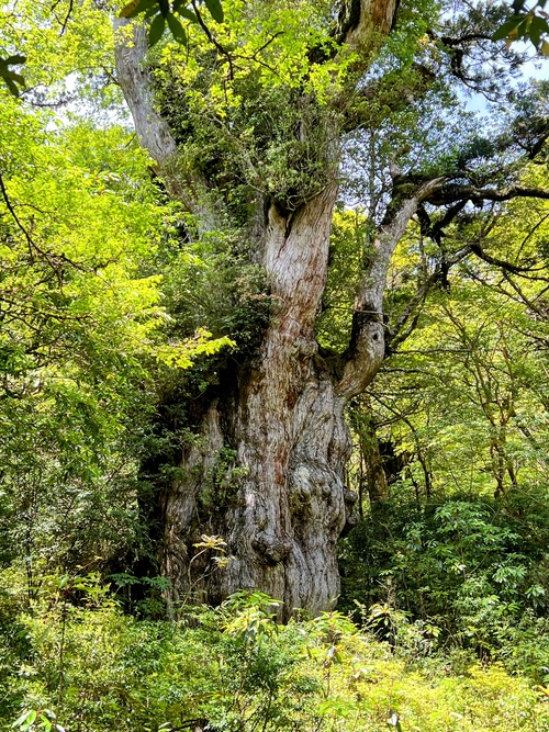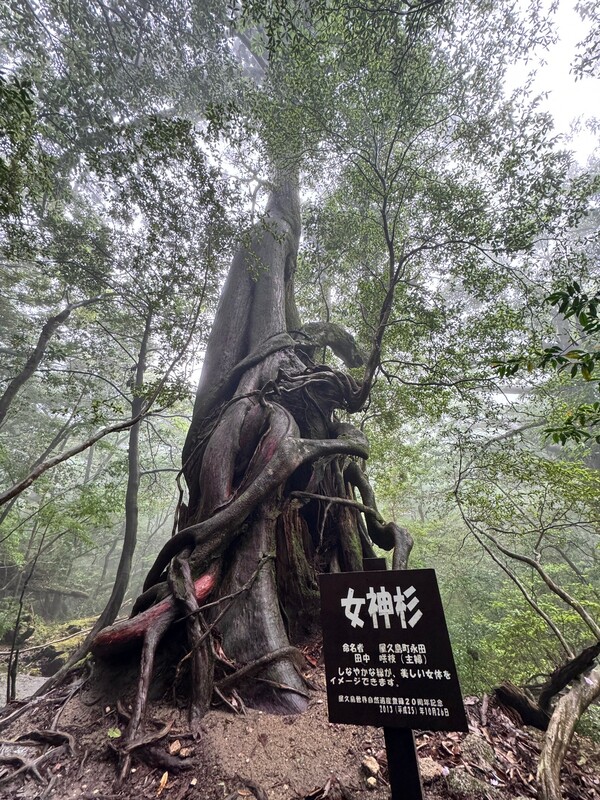 在台灣時每天反覆查看天氣預報,早知此行的天氣不佳。一出門天空有些烏雲,領隊發給四天的週遊卷,島內公車可以搭到飽。7:40搭上在地公車,聽著輕柔日語撥放的停靠站資訊,聽不懂但感到新鮮有趣。先搭至宮之浦小原町站,再轉搭白谷雲水峽宮之浦線,小原町站旁的宮之浦川水深碧綠景色真是美。抵達白谷雲水峽時,雨勢驟然變大,大伙或撐傘或穿雨衣前行,迷濛的霧雨中,循著枕木步道沿著白谷川畔往上爬,充沛的溪澗由高往下氣勢磅礴,頗為壯觀。進入森林步道,比想像中還不滑的花崗石山徑,沿途林相優美,植物生態豐富,有蓳菜、水晶蘭…等。過了吊橋,進入苔之森區域,充滿苔蘚的石頭及溪谷,步道上造型特殊的樹洞,整個森林宛如被施了魔法,充滿神秘及靜謐的氛圍,美的讓人不時駐足。時間的關係,太鼓岩步道我們走到苔之森地標折返,再接往奉行杉步道P型回,或越溪、或爬升、陡下,景色美麗多變,溪谷鵝卵石、巨木群、樹洞無不佈滿苔蘚,造型特殊扭曲樹幹的巨木,可看性十足,時不時出現的雄偉巨木---奉行杉、三本槍杉、三本足杉、二代大杉…,讚嘆這森林竟蘊藏如此多瑰寶~回到管理站約1點,因公車班距長達2小時,依領隊指示,匆匆吃完午餐就前往站牌排隊,順利搭上公車且有座位。2點多回到小原町下車,接著散步進入宮之浦小鎮,逛了寧靜的久本寺,小店吃了冰淇淋,行經宮之浦大橋,欣賞河口風光及遠山景緻,隨性逛了幾間精巧的店舖,晚餐選擇一間評價頗高的印度餐廳,各式烤餅、咖哩、啤酒…,好吃別具特色。在等待回民宿的公車中,也結束時晴.時雨.美妙.精彩的一天~