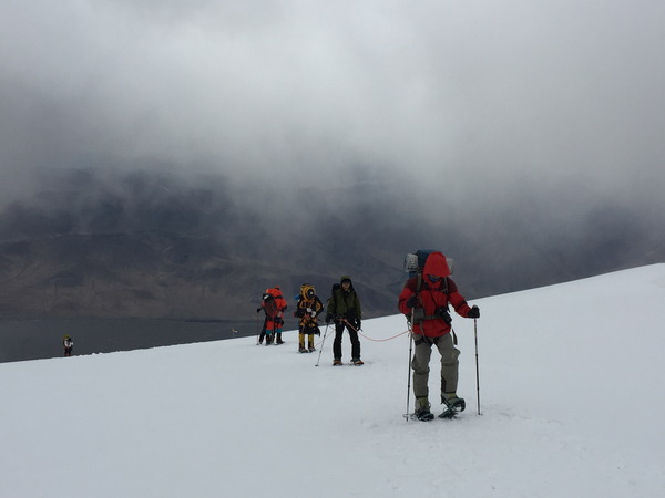 海拔5700-5900m是裂縫區,是橫豎交錯的冰裂縫區,還有一些暗裂縫,應緩慢謹慎行走,沿著別人的腳印行走;海拔 5620m附近,坡度 25-35 度,易發生滑墜,需用踏雪板(snow shoes),且此處路線距冰川斷崖很近,一旦滑墜,有掉進崖谷的危險,因此這路段的上升、下撤都要十分小心。