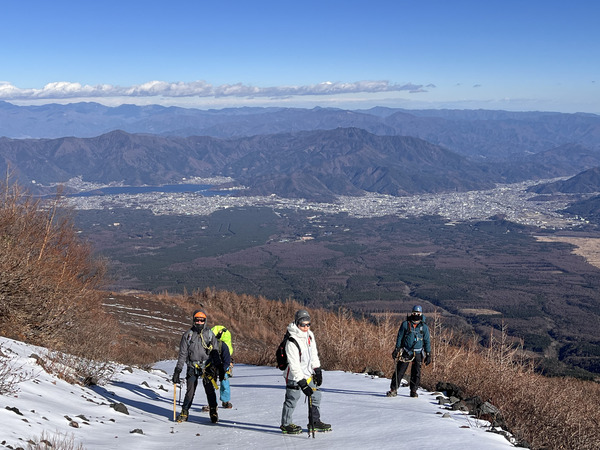 來自各路的英雄好漢,在河口湖車站的鳥居集合。這次的隊員共有六人,算得上是小班制教學了!分完公裝後,我們乘坐計程車前往馬返,開啟我們的富士山雪訓。