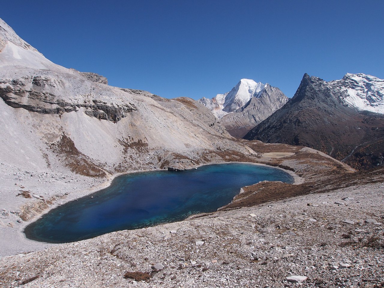 早上出發後,一路爬升多個小埡口和滑坡帶,在山腰上可遠望央邁勇和夏諾多吉。中午到達央邁勇轉折點——黑湖埡口,可遠望黑湖。隨後是一段平緩的石板路,到達甲獨牛場,在蝴蝶石合照留影。繼續前行,到達甲獨措(水面平靜可拍攝倒影),再抵達蛇湖埡口。蛇湖埡口可將蛇湖(智慧海)一覽無餘,同時看到仙乃日背面和央邁勇西側,是極佳的攝影點。隨後垂直下降200米,到達蛇湖邊紮營,在此可拍攝央邁倒影和星空。