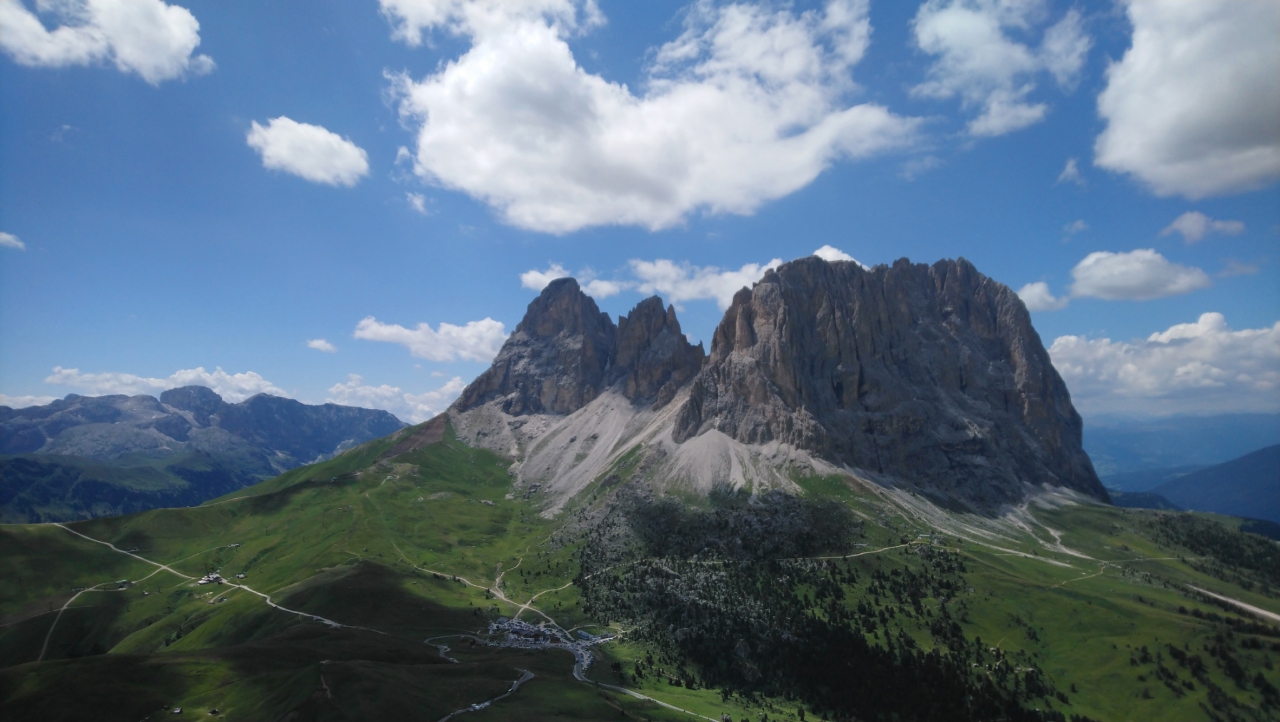 我們第一天的健行是一個輕鬆的開始。先搭乘纜車到東邊的Doss del Sabion,在這裡能展望美麗的義大利阿爾卑斯山城。