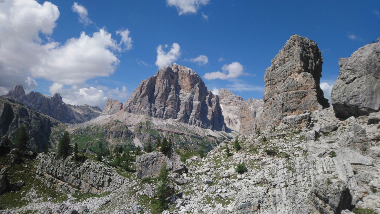 在憑弔歷史的同時,我們也能在五塔峰邂逅無數健行、攀岩的愛好者。我們由北往南健行,抵達Passo Giau後,搭車前往最後一個住宿的山城柯蒂娜丹姵佐Cortina d'Ampezzo。
