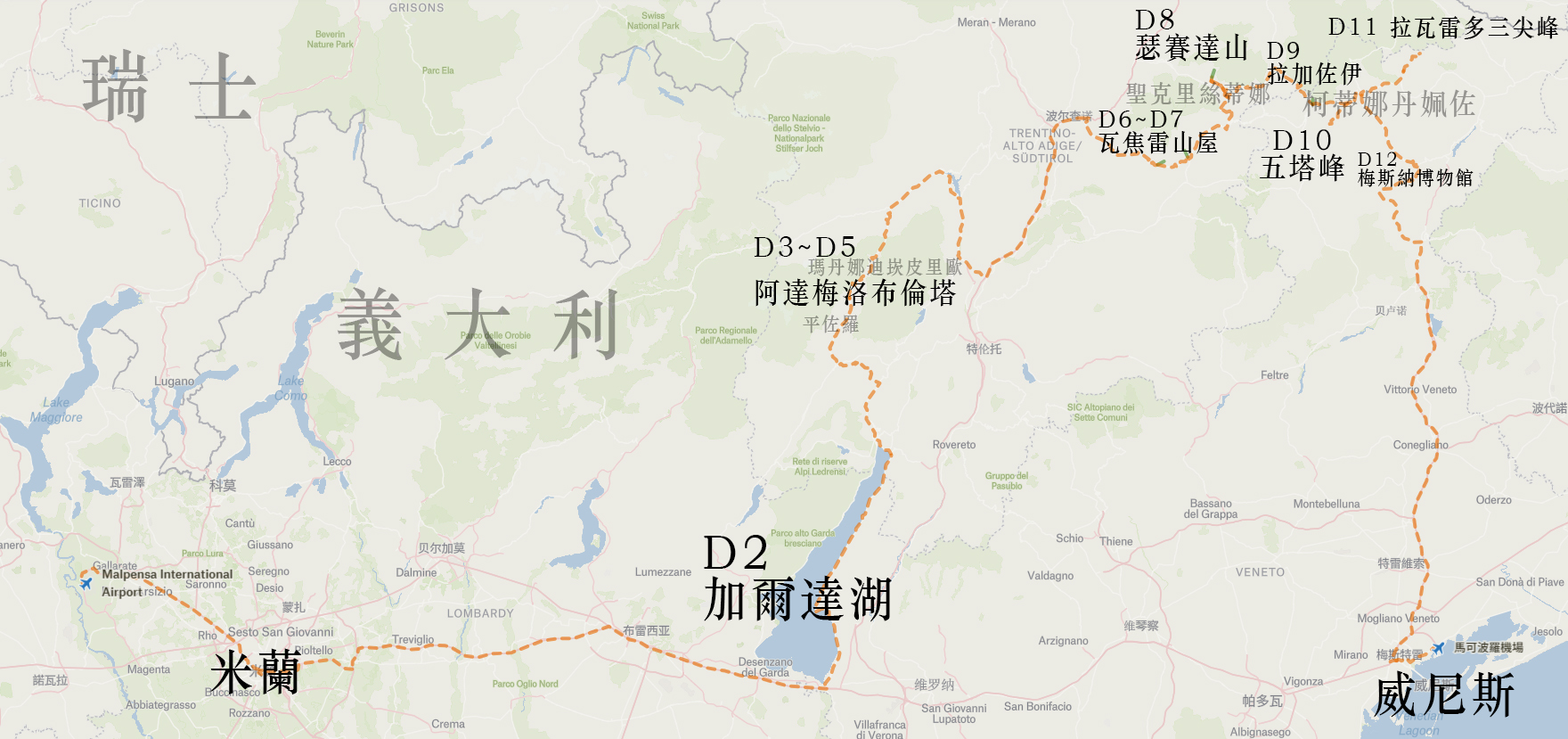 ★ 由米蘭進、威尼斯出,從西邊一路健行到東邊,景色多變。