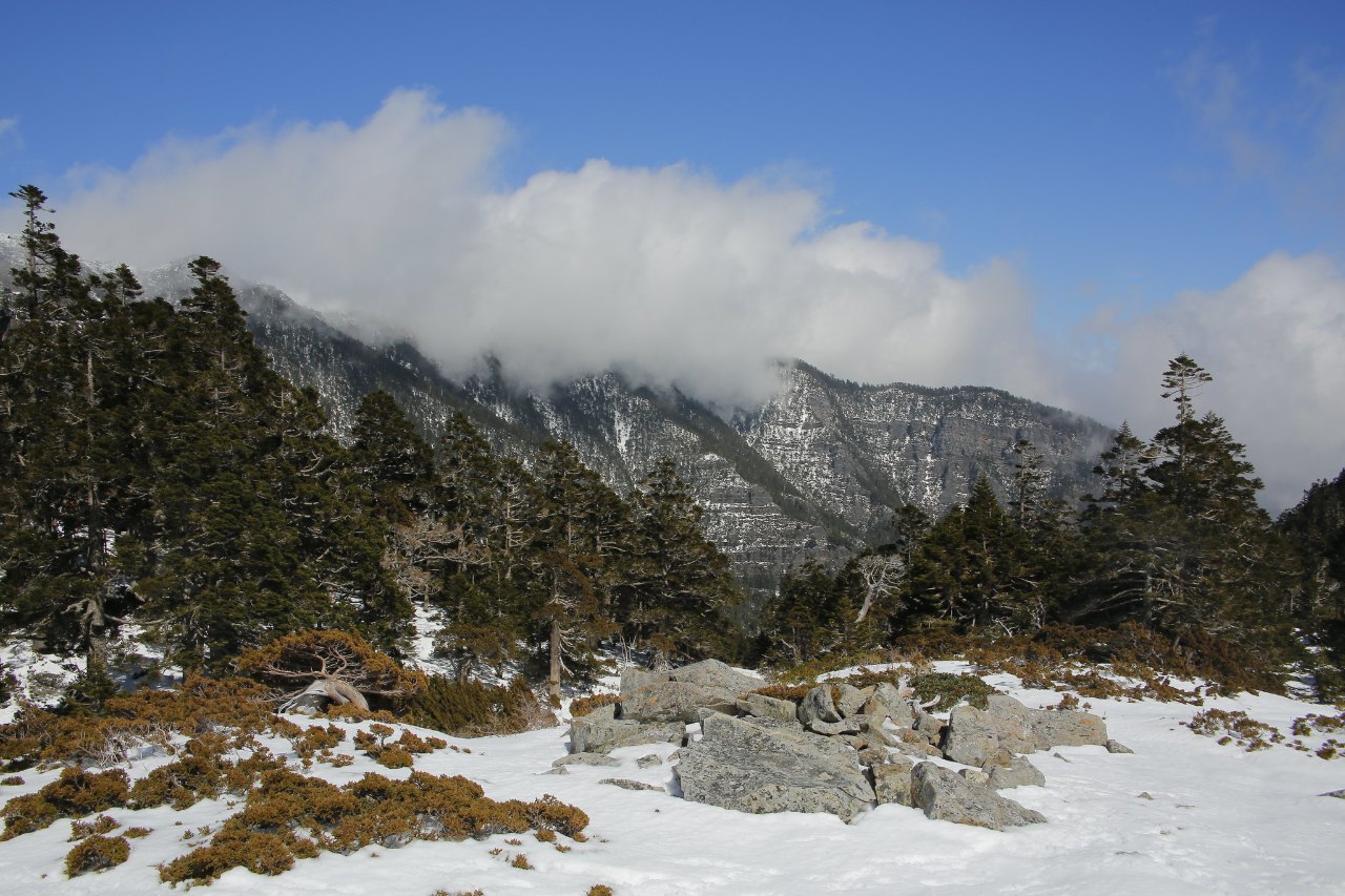 抵達圈谷時,您能看見雪山圈谷、玉山圓柏與靄靄白雪相映襯。這裡的輻射冷因圈谷地形難以散去,致使圈谷積雪量是雪山山區最多的地方,同時也極為寒冷,須注意保暖。