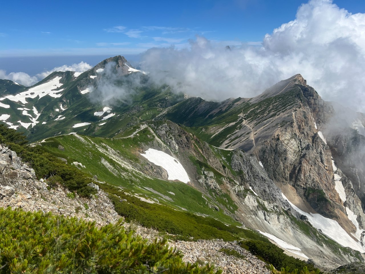 是飛驒山脈中白馬區最高山峰,可以欣賞到壯闊的美景,和全年不化的雪景,加上登山配套完整(日本最大的山屋)與難度適中適合大眾登山者, 是非常推薦的日本登山夢想清單。 白馬三山縱走這條路是走在山陵線上,展望極佳能欣賞四周連綿山峰美景,夏季新綠帶著殘雪非常漂亮!