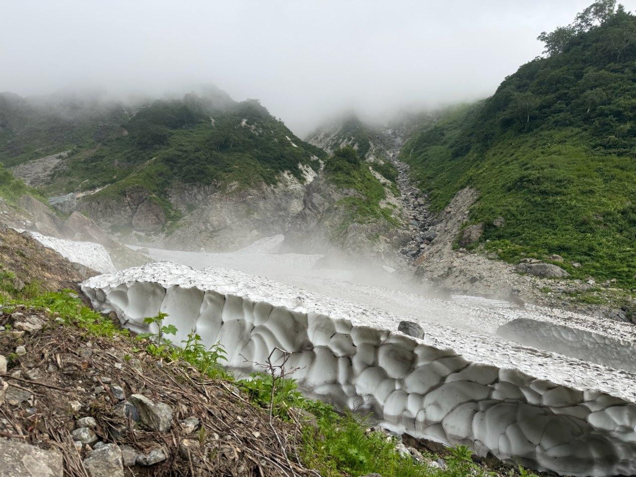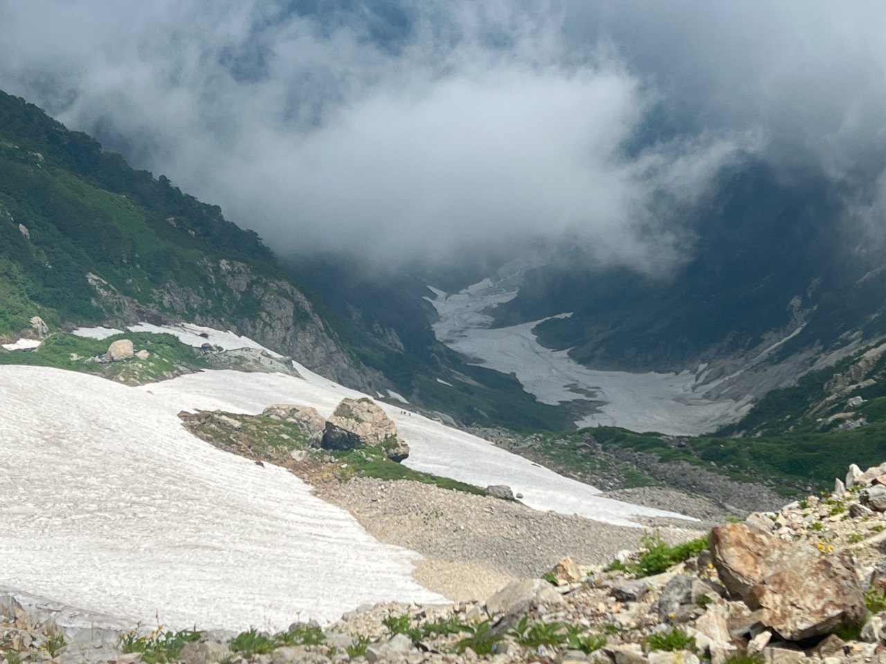 狹長的稜線一路延展,視野極佳。即使在盛夏,山脊間仍殘留雪線,讓人彷彿行走在銀白世界。