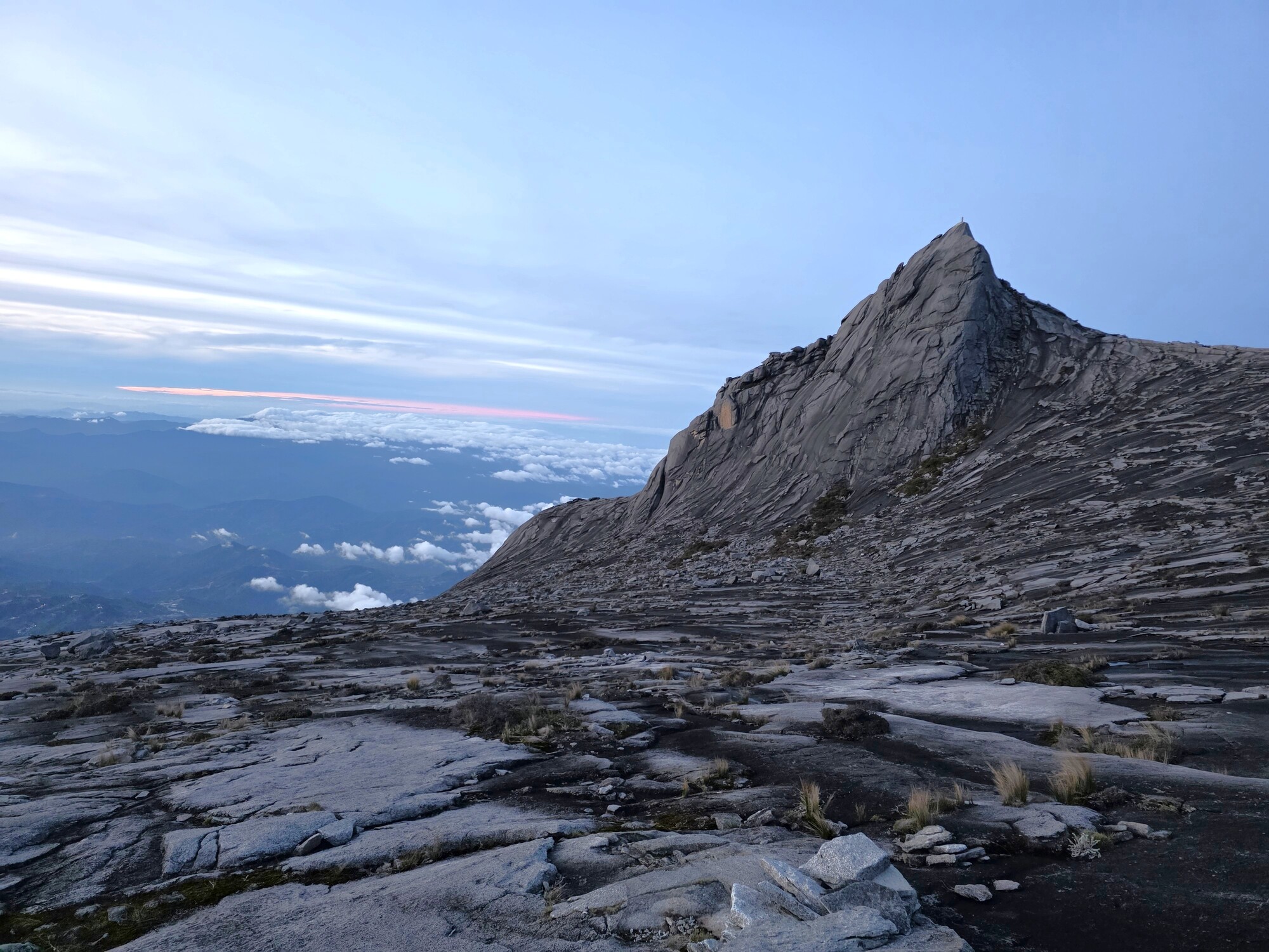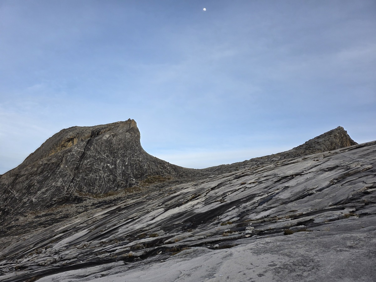 登頂前的高山裸岩平台是神山最具代表性的景象,廣闊的花崗岩面、孤峰與裂隙構成彷彿外星般的地貌,是登山者最難忘的自然奇觀