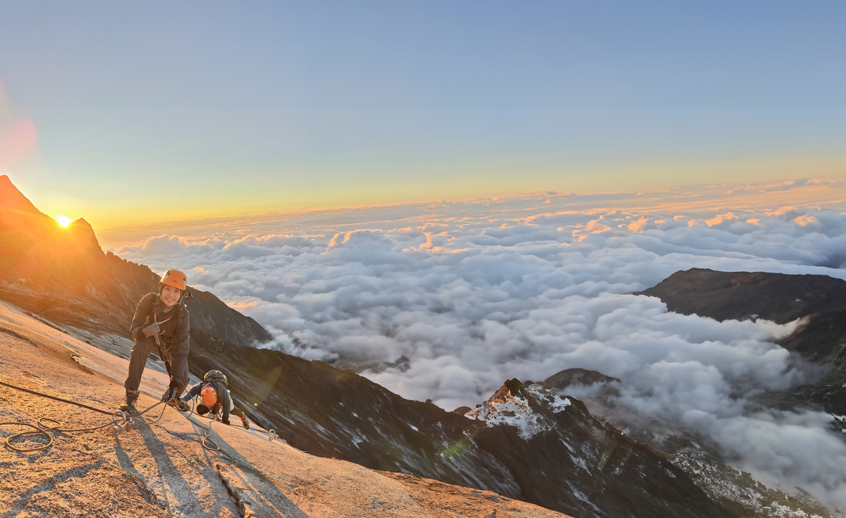 今天凌晨起床攻頂,預計凌晨 1 點 起床,享用輕食早早餐/宵夜(如吐司、粥或熱飲),2:30出發,登頂路程約2.7公里,海拔上升800公尺,全程配戴頭燈延繩索前進,約2小時抵達Sayat-Sayat 小屋(3,668m),這裡有檢查哨,需再此進行身分確認,通過後方可繼續攀登並獲得登頂證書。之後便是陡峭花崗岩坡和繩索輔助路段,成功抵達神山主峰——羅氏峰(Low’s Peak,4,095米)欣賞美麗的日出,照亮群峰的壯麗,俯瞰180度山中城鎮全景!! 登頂後返回鋼索路線集合點(7KM檢查哨),需要在07:15am前抵達,進行鋼索活動。活動結束後返回山屋享用早餐並整理行李,下山至登山口丁波漢門(需4–6小時,視天氣與速度而定)。再搭車返回神山公園管理處和亞庇(車程約3小時)。晚上自由探索夜市和享用慶功宴!!