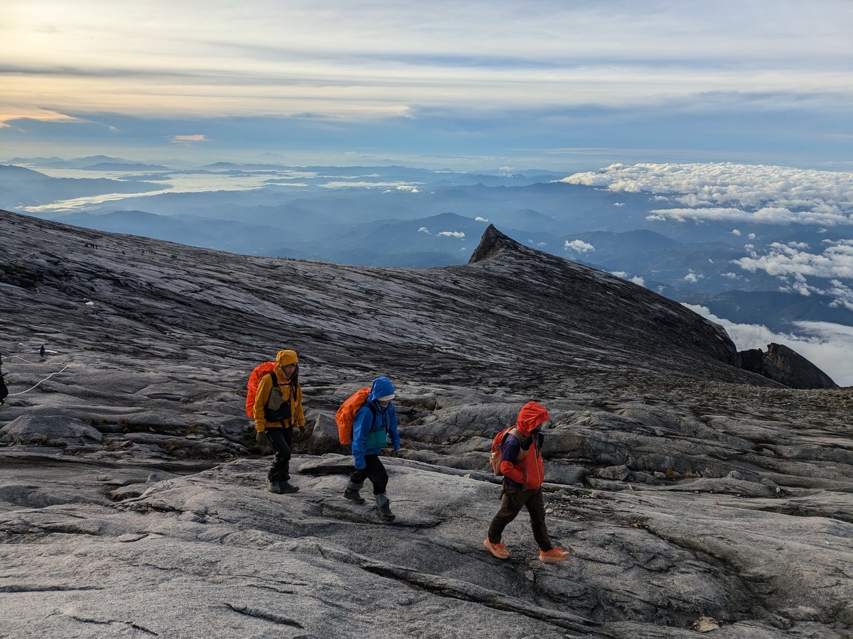登頂前的高山裸岩平台是神山最具代表性的景象,廣闊的花崗岩面、孤峰與裂隙構成彷彿外星般的地貌,是登山者最難忘的自然奇觀