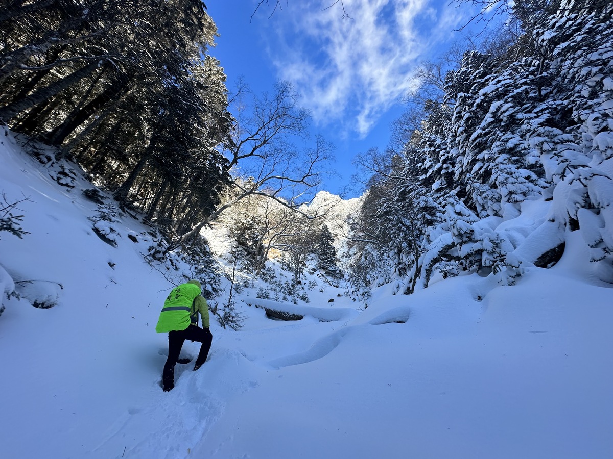 ◆ 從南八岳北端出發,沿著稜線穿越森林、雪稜、雪岩與雪坡,途中景緻多變而豐富