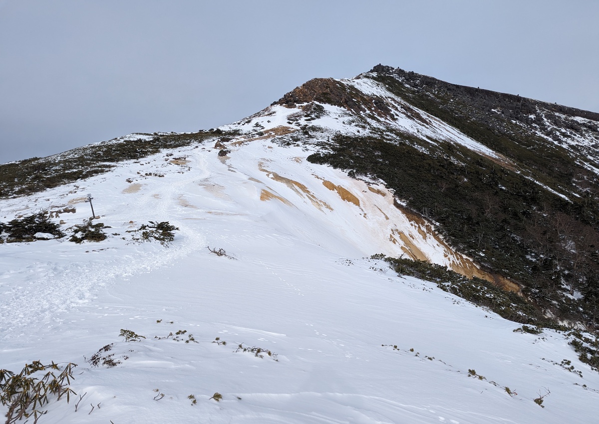 *硫黄岳:是南八岳的最北端山頭,北側有巨大的火山口,是火山活動的遺跡。南側是緩坡岩石地帶,從這邊開始正式進入南八岳的岩稜地形。